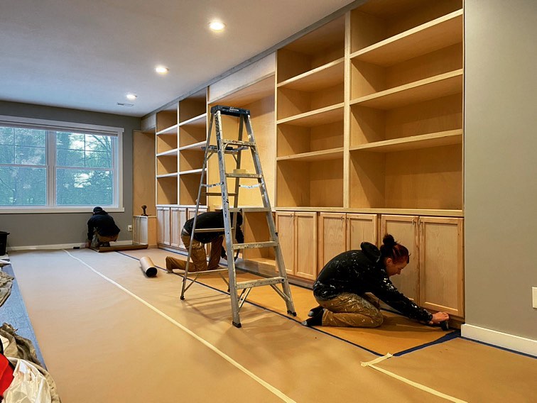 Masking isolates the kitchen and ensures a clean and protected workspace.