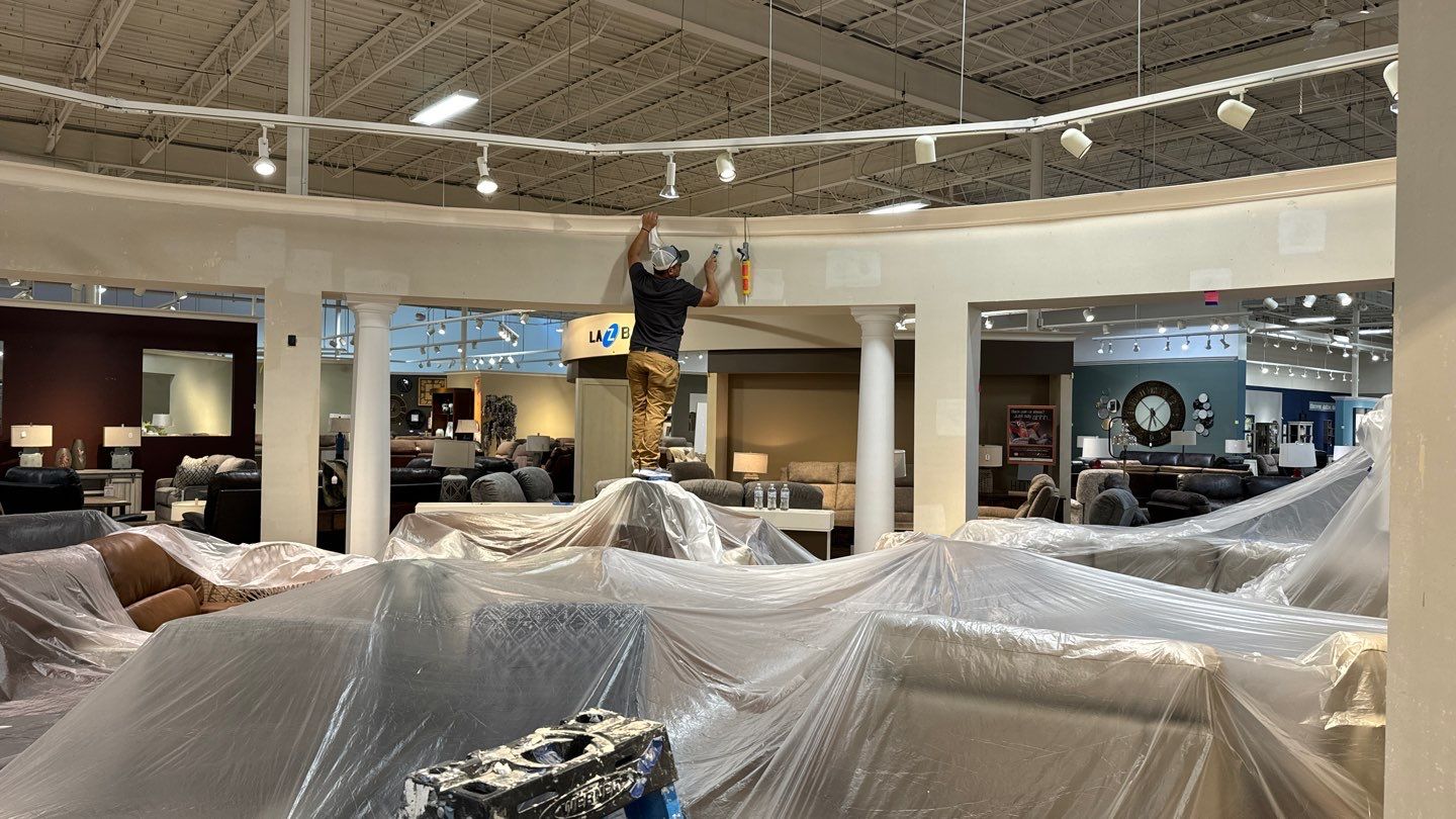 Revitalizing commercial spaces through painting elevates the overall customer experience. Through the modernization of retail environments, we are actively transforming the very essence and attributes of the business. Design trends are constantly evolving, maintaining contemporary wall aesthetics in furniture stores is crucial. This ensures that customers can authentically envision how the pieces will complement their homes, fostering a truly immersive shopping experience.